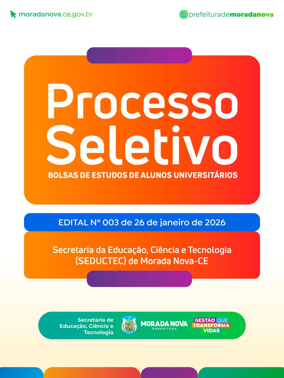 PROCESSO SELETIVO SIMPLIFICADO PARA CONCESSÃO DE BOLSAS DE ESTUDOS PARA ALUNOS UNIVERSITÁRIOS DO MUNICÍPIO DE MORADA NOVA