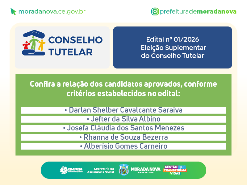 31-03-2026A Prefeitura de Morada Nova informa que será realizada, no dia 23 de março de 2026, a capacitação obrigatória destina [...]