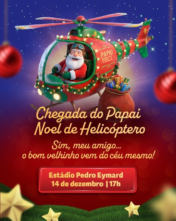 O Papai Noel fará sua chegada especial de helicóptero, trazendo ainda mais encanto e emoção para este período tão esperado.