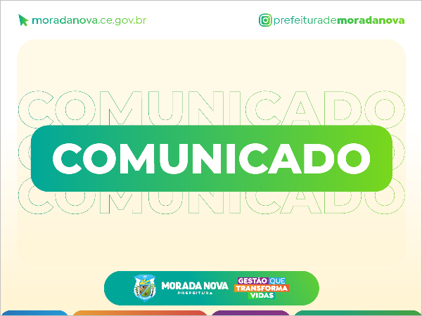 A Prefeitura de Morada Nova informa que será realizada, no dia 23 de março de 2026, a capacitação obrigatória destinada aos candidatos considerados [...]